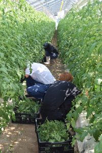 9月17日 (株)中田農園(富山市)にて、ハウス大玉トマトの下葉かきを行いました。