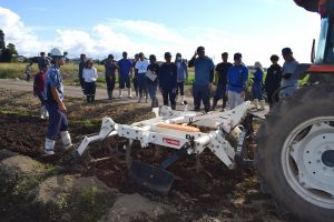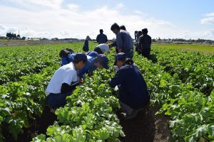 10月2日 (株)高慶農産(魚津市)のダイコンほ場で調査区の生育調査を行った後、高慶氏から栽培状況について説明いただきました。また、スタブルカルチの作業についても見せていただきました。