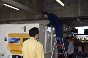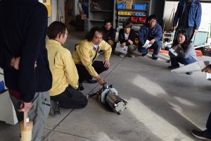 10月21日 (株)大島農機中日本営業所の高田所長より穀物乾燥機の基礎知識について講義を受けた後、実機を用いて乾燥機の構造やメンテナンスの方法について学びました。