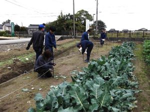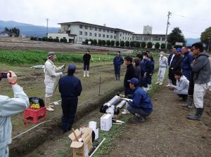 10月31日 富山農林振興センター職員から、鳥獣侵入防止柵の仕組みと設置方法の説明を受けた後、カレッジほ場にネット柵と電気柵を設置しました。